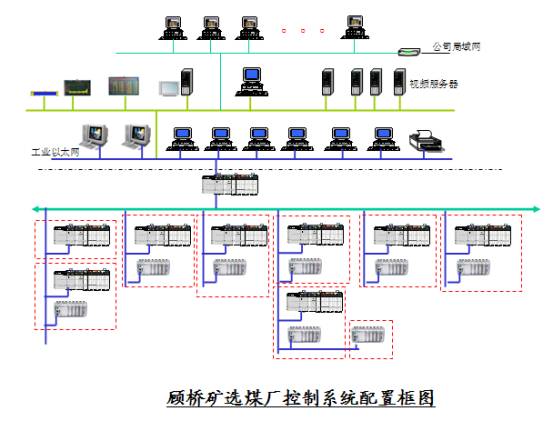 顧橋煤礦選煤廠為年入洗能力為 800 萬噸。主要工藝流程是淺槽重介選煤工藝。控制系統 PLC 采用AB Controllogix